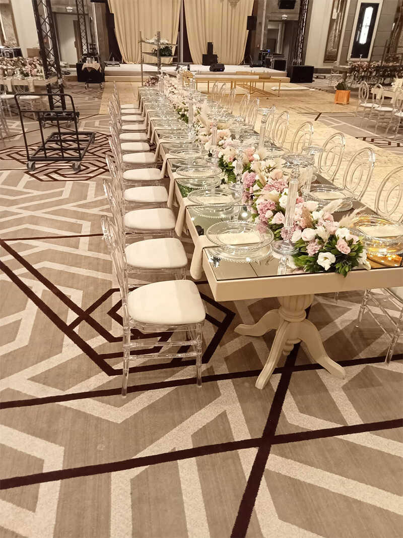 Özellikle VIP misafirlerin bulunduğu organizasyonlarda standart masalar yerine aynalı modeller tercih edilerek çok daha seçkin bir atmosfer oluşturulur.