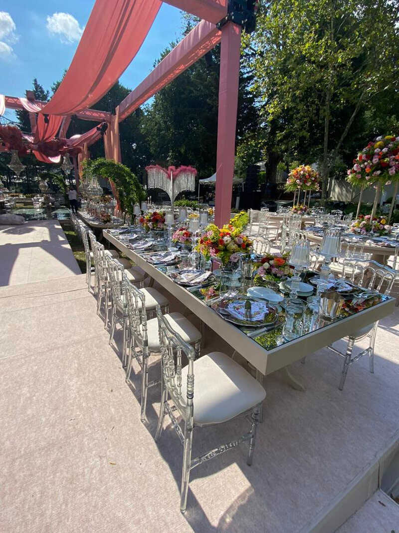 Işığın, zarafetin ve ihtişamın tek bir yüzeyde buluştuğu aynalı davet masaları, organizasyonunuza sıradanlığın çok ötesinde bir atmosfer kazandırır. En özel anlarınız için kusursuz bir görünüm sunar.