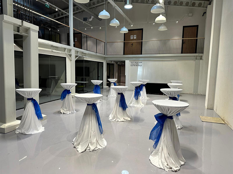 Yuvarlak masa, banket masa, kokteyl masası veya farklı sandalye modelleri organizasyon konseptine göre seçilebilir.