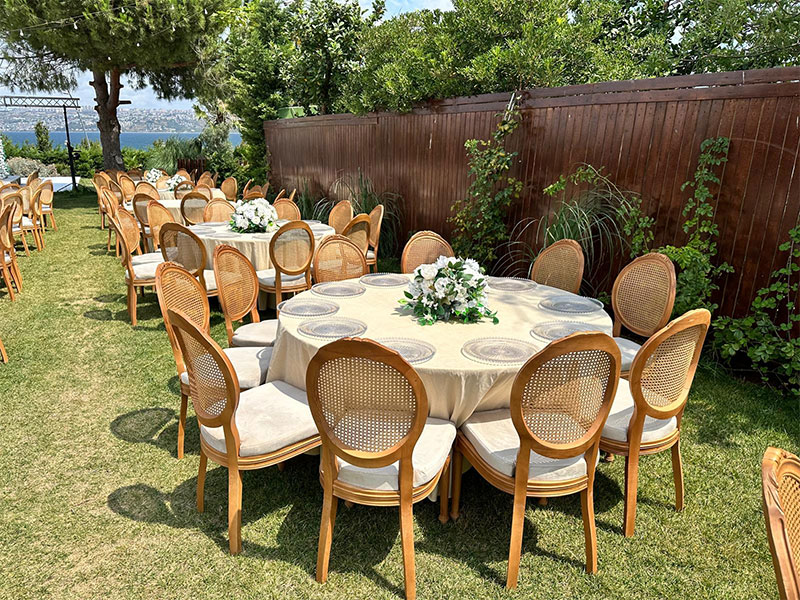 Hazeran Sandalye, şıklığı ve zarafeti ile etkinliklerinizde dikkat çeker. Üstün tasarımı, ince detayları ve konforlu oturumu sayesinde her tür organizasyon için mükemmel bir seçimdir. Özellikle düğünler, nişanlar, kokteyller ve özel etkinliklerde sıklıkla tercih edilen Hazeran Sandalyeleri, hem iç mekan hem de dış mekan etkinlikleri için idealdir.
