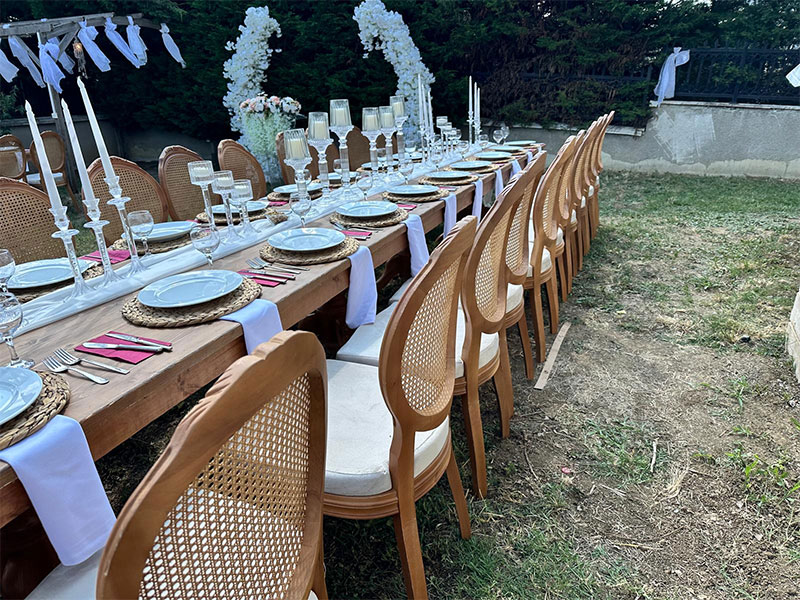 - Çeşitli Seçenekler: Birçok sandalye ve masa modeli ile etkinliğinize en uygun olanı seçebilirsiniz.