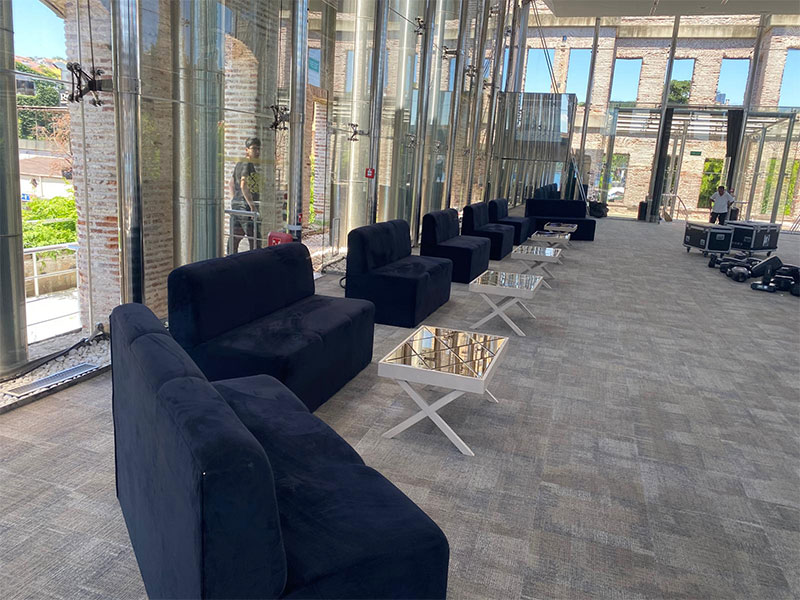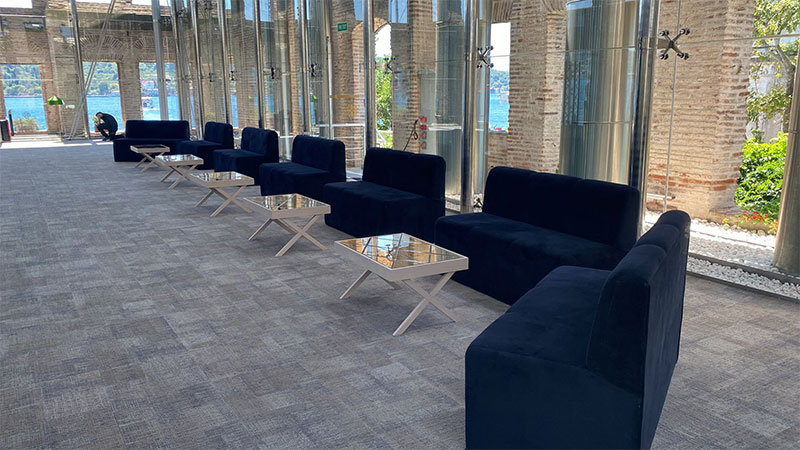 Oturma grupları, sehpa, halı, aydınlatma ve dekoratif aksesuarlarla birlikte kullanıldığında son derece şık bir VIP alan ortaya çıkar. Bu durum organizasyonun profesyonel ve üst segment görünmesini sağlar.