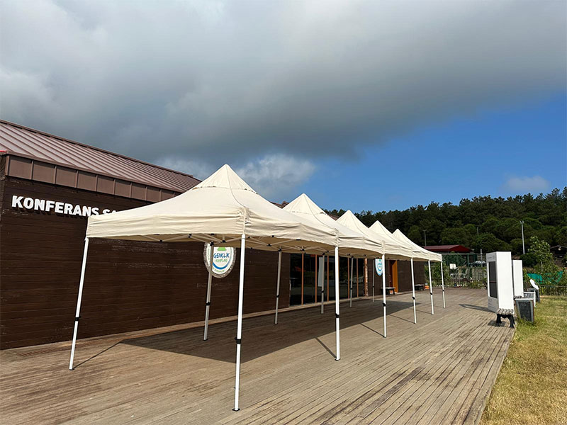 Tüm tente sistemlerimiz dayanıklı, su geçirmez ve güvenlik standartlarına uygun malzemelerden üretilmiştir.